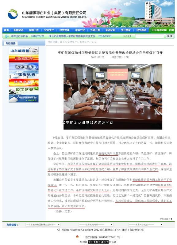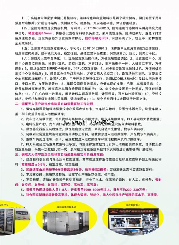 本產(chǎn)品一經(jīng)推出即獲得各大設(shè)計(jì)院及用戶(hù)的一致好評(píng),率先在棗礦集團(tuán)岱莊煤礦取得成功應(yīng)用,2018年9月受邀參加了《棗礦集團(tuán)煤場(chǎng)封閉暨儲(chǔ)裝運(yùn)系統(tǒng)智能化升級(jí)改造現(xiàn)場(chǎng)會(huì)》,智能裝車(chē)系統(tǒng)得到了充分肯定!我司憑借雄厚的加工制造實(shí)力及過(guò)硬的創(chuàng)新技術(shù)能力,勢(shì)必為運(yùn)輸稱(chēng)重系統(tǒng)、快速計(jì)量裝車(chē)系統(tǒng)帶來(lái)又一次的技術(shù)創(chuàng)新變革。