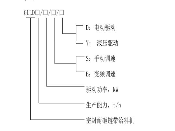 密封式耐砸鏈帶給料機(jī)型號說明: